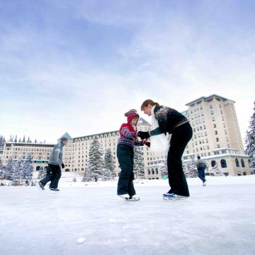 Don’t miss skating on the frozen waters of Lake Louise directly in front of the hotel. Is this one of the most spectacular ice skating backdrops ever?