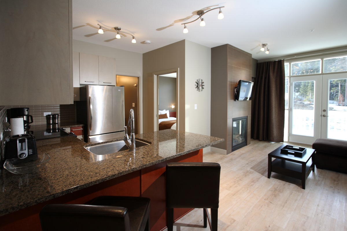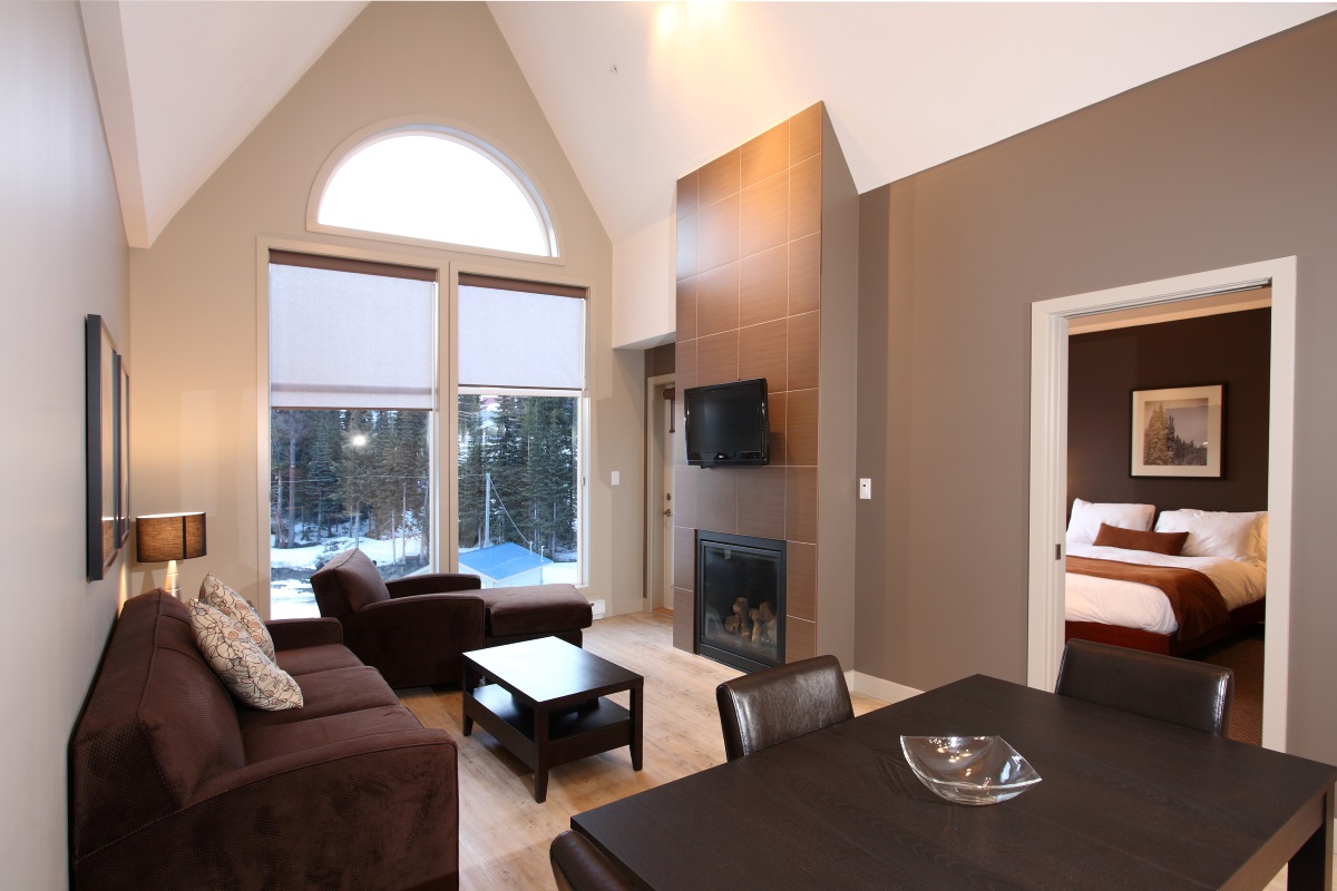 Firelight Lodge in Silver Star’s mid-mountain village is located by the tubing park and ice skating rink so perfect for families looking to make the most of their time enjoying all the activities Silver Star has to offer. From here you can take a slide along a green run to the Silver Queen Chair lift, when returning after your day skiing/riding the closest return run is across the road (about a 2 minute walk back to the property).