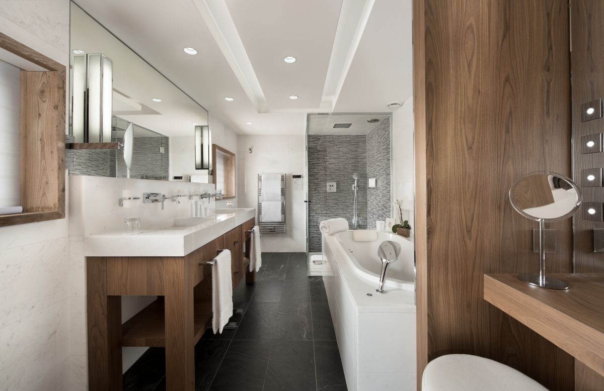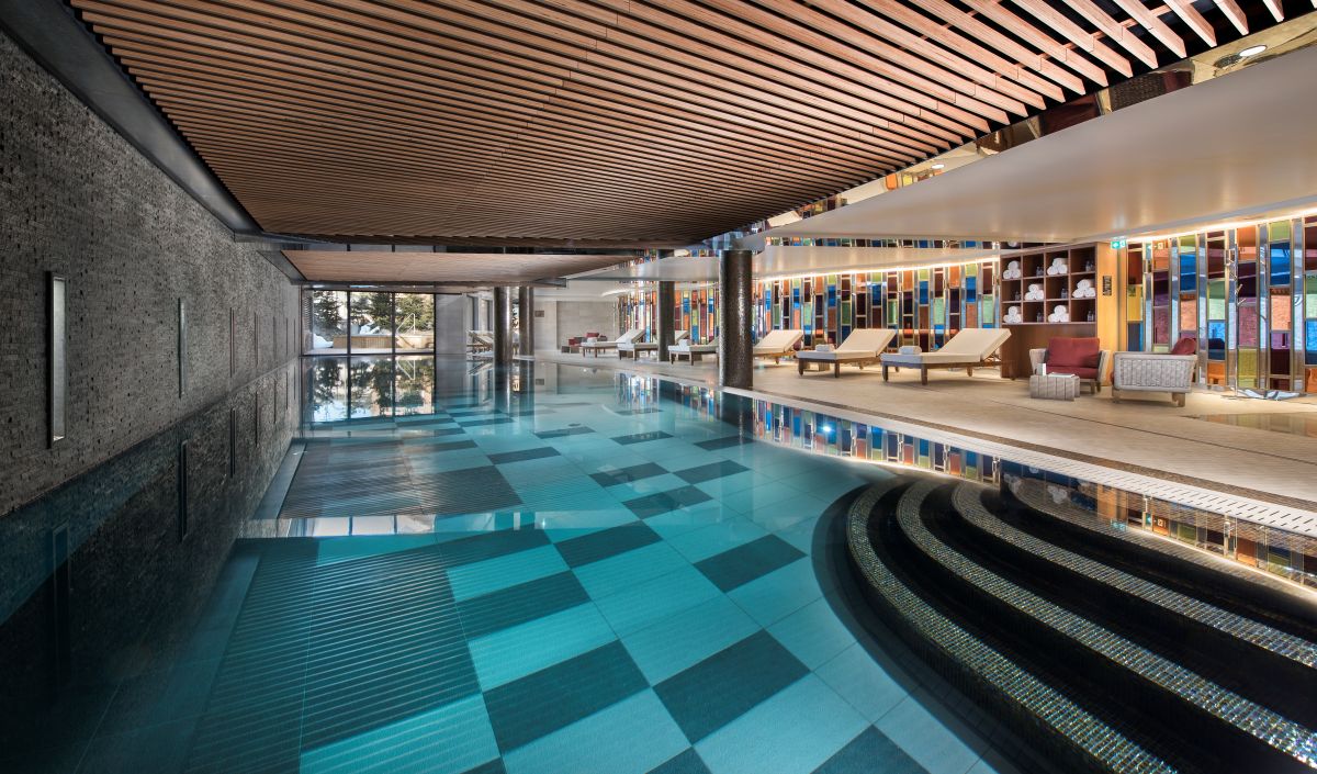 Its elegant design makes use of natural materials to create a warm chalet-style atmosphere with a refined and luxurious feel. The hotel has a fantastic range of facilities and the spa is one of the largest in the resort with a 20m swimming pool, steam room and outdoor Jacuzzi.