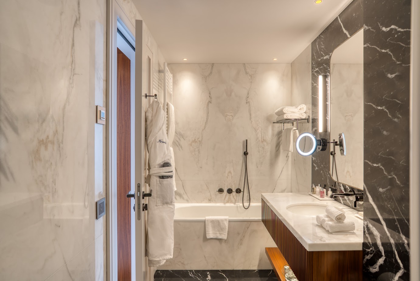 The Grand Hotel des Bains Kempinski is situated on the outskirts of St Moritz Bad, just a two minute walk from the nearest ski lift up to the Corviglia area and a short shuttle bus ride to the village centre.