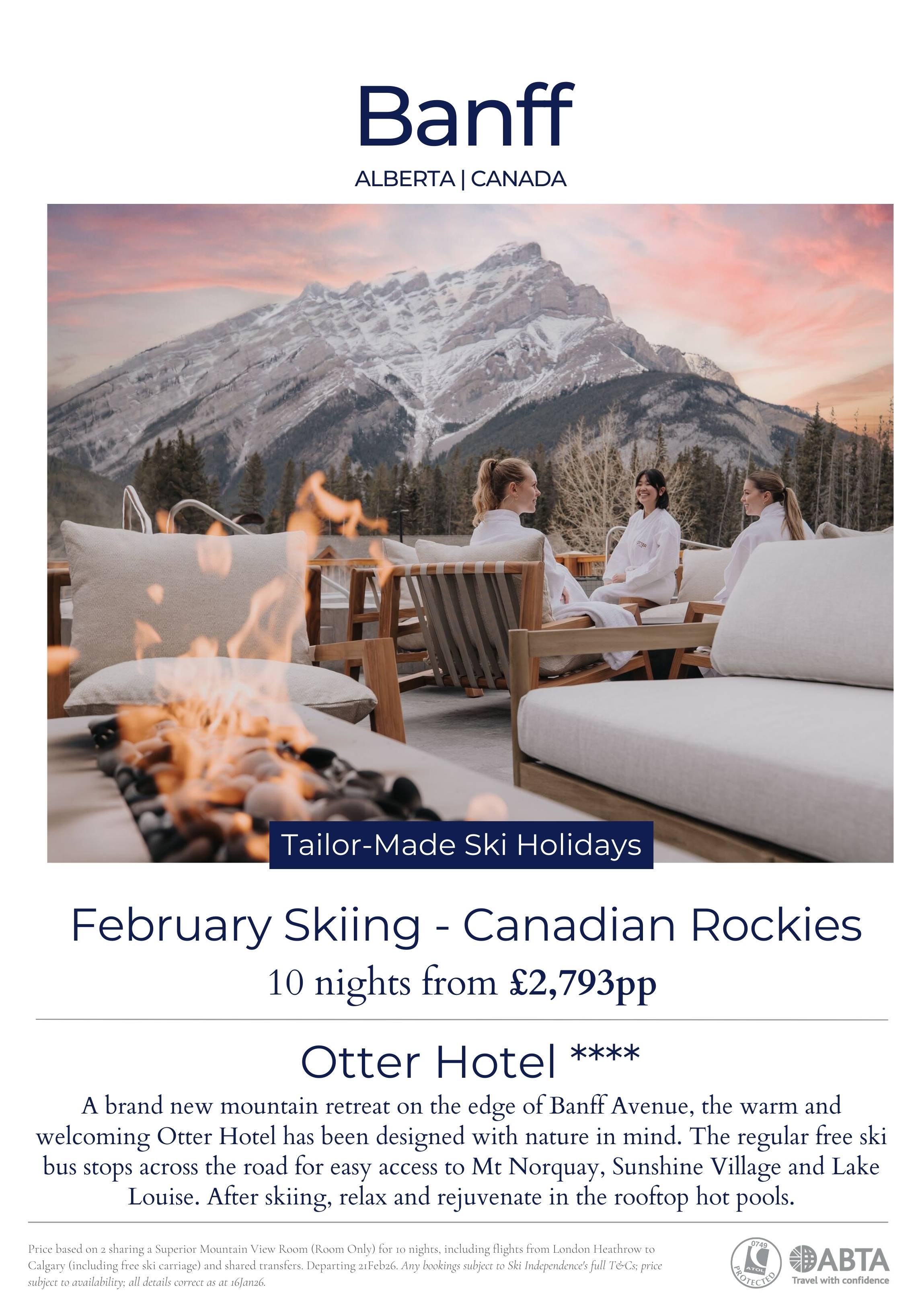 A brand new mountain retreat on the edge of Banff Avenue, the warm and welcoming Otter Hotel has been designed with nature in mind. The regular free ski bus stops across the road for easy access to Mt Norquay, Sunshine Village and Lake Louise. After skiing, relax and rejuvenate in the rooftop hot pools.