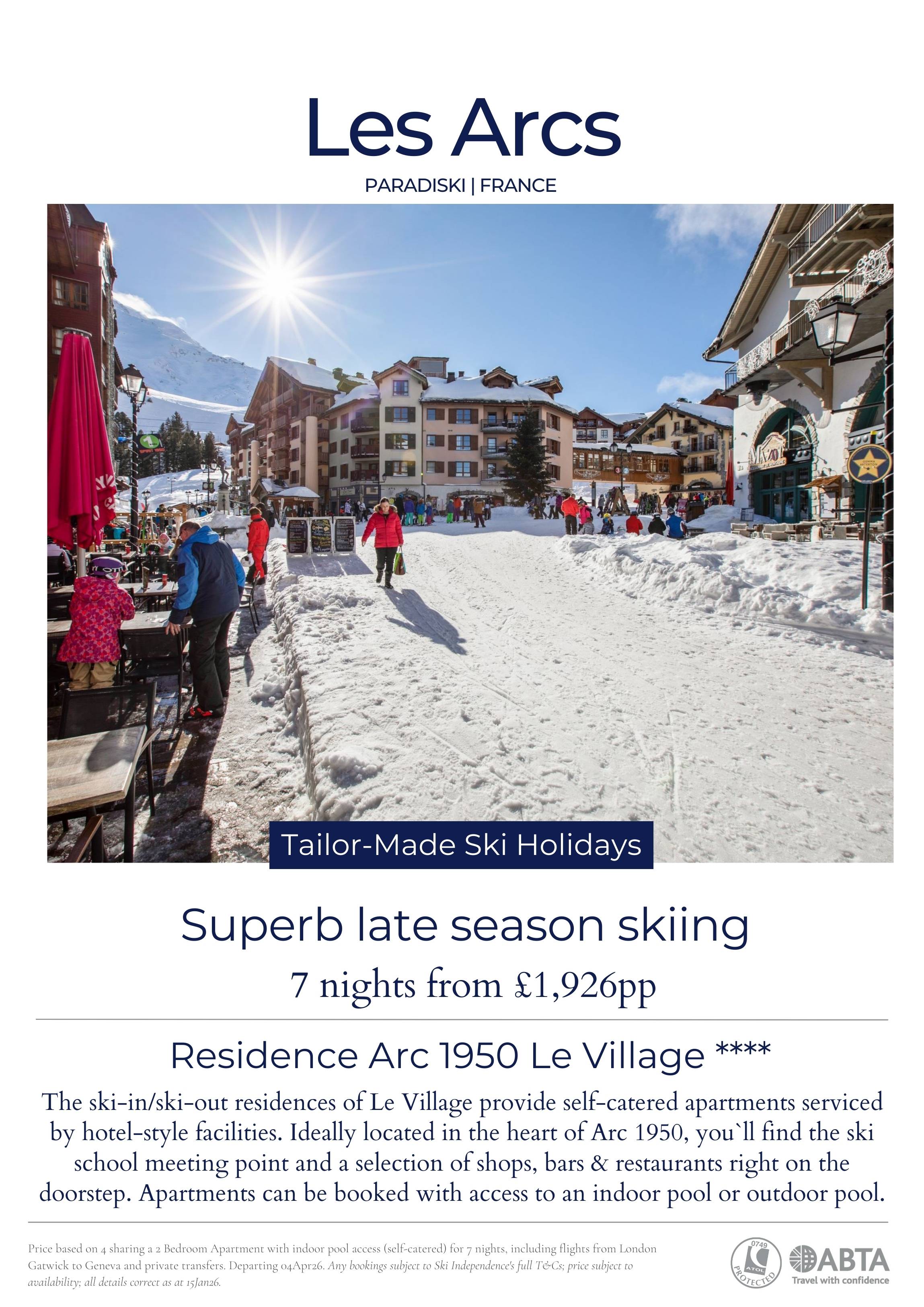 Find our latest A4 posters below which you can display in your shop window or share on your social channels. All bookings are subject to Ski Independence's full T&Cs; prices subject to availability; all details correct as per published dates detailed on posters.