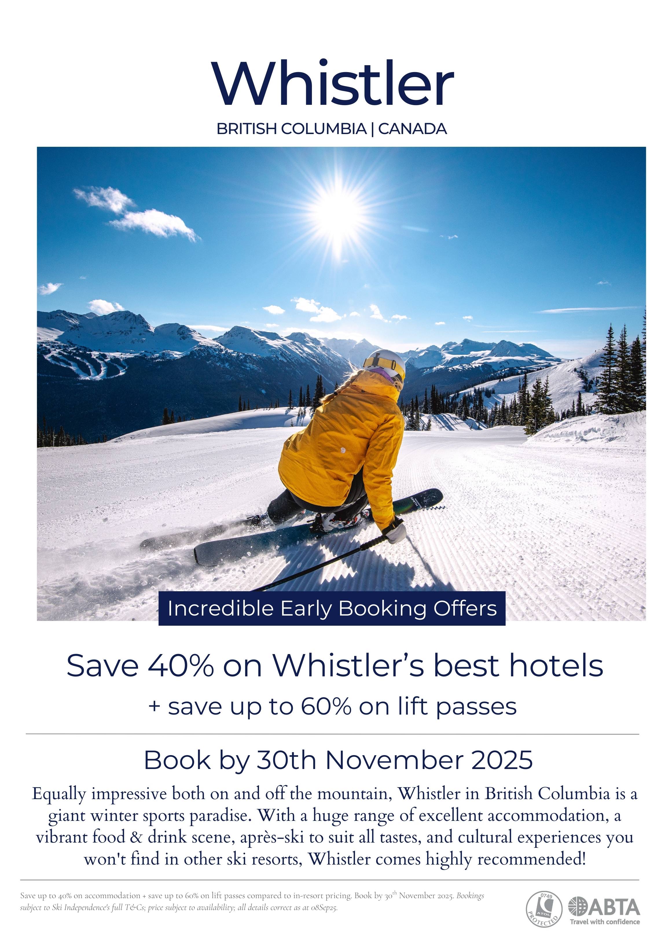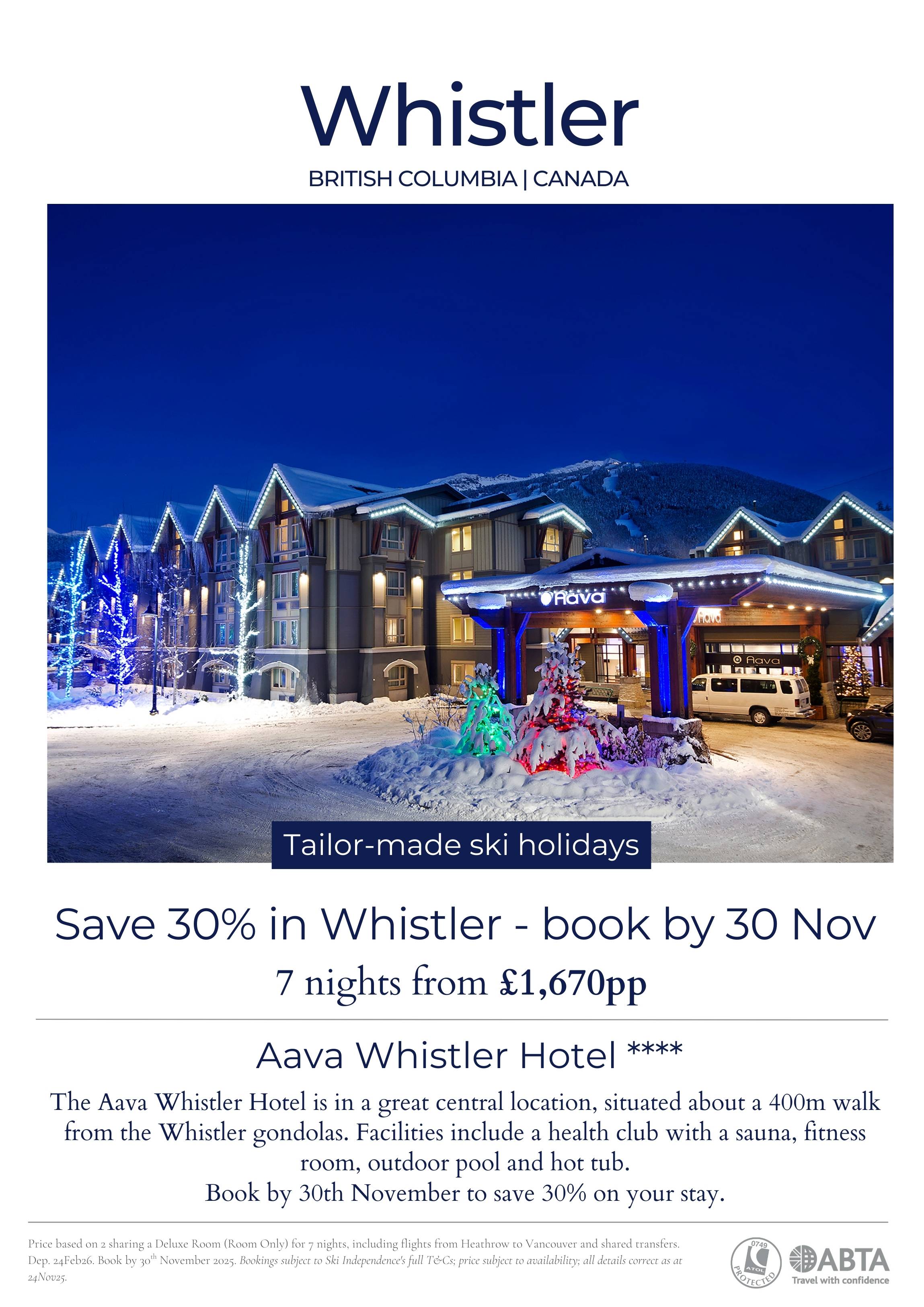 With world class skiing, buzzing apres-ski and stunning accommodation, Whistler is the perfect mix of adventure and luxury. Book a Whistler ski holiday now for up to 40% savings on accommodation and huge discounts on ski essentials like lift tickets and ski school – book by the 30th November.